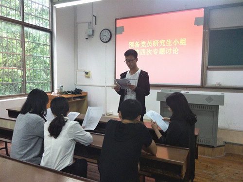 5月15日上午10时许,sunbet申搏第31期预备党员培训班研究生组在sunbet申搏305教室开展了第四次专题研讨,此次讨论会由韩康康主持,研究生组全体预备党员参加。