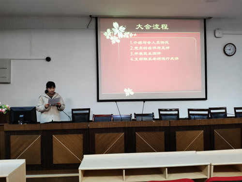 会议共与四个流程,分别为介绍与会人员情况、党员的自评与互评、开展民主测评、支部联系老师进行点评。琳琳主持开场,与会党员逐一上台自评。每一名党员根据自己过去的一年的学习、生活和工作等各方面的情况,本着实事求是的精神进行总结。党员们在个人自评中既说出了自己的优点,同时也直面了自己的不足,最后坚定自己会一步步成为一名优秀党员的目标。在党员同志互评环节,大家都能做到不虚假,不奉承,根据实际情况点评党员,使被点评的党员能够更深刻认识自己的优点和不足,使党员能够在今后做得更好。在民主测评环节,党员同志们都做到民主、公平、公正。