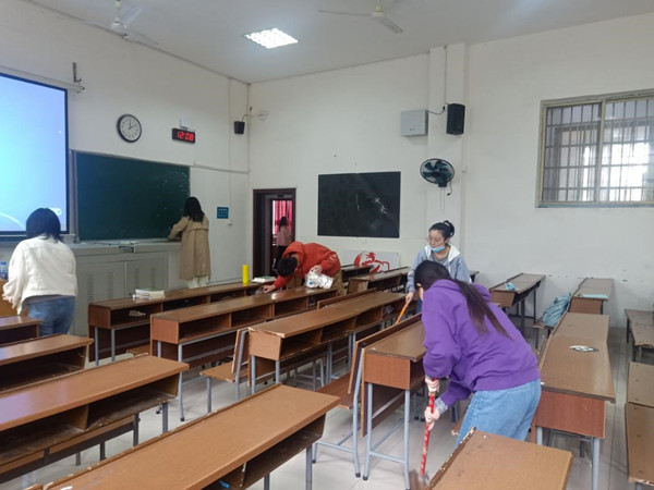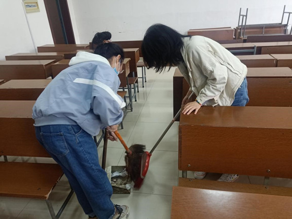 活动开始前,张静波说明了此次义务劳动的具体内容、要求以及注意事项,鼓励成员积极参与劳动。活动过程中,成员分成两组分别对历文院405、411教室进行打扫,打扫内容包括扫地、拖地、擦黑板、擦桌子以及清理抽屉等。打扫结束后,培训班成员集合到411教室,依次发表了自己的体会与感悟。活动结束后,张静波对此次义务劳动做出了总结,肯定了培训班成员参与劳动的积极性以及认真态度,并希望同学们在今后的学习生活中时刻牢记奉献意识,积极服务他人与集体。