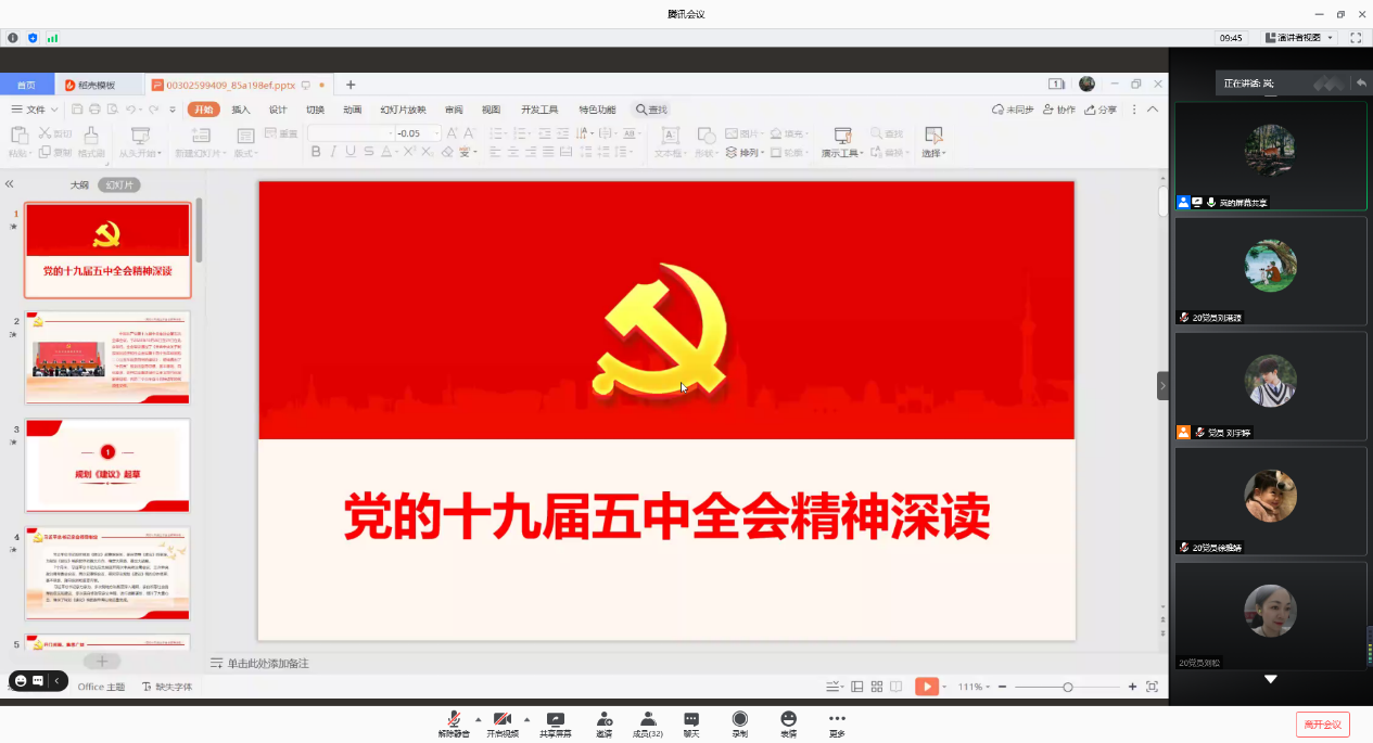 (通讯员刘港源 刘宇婷 黄金洲)2020年12月15日晚上7点,我院研究生第二党支部于腾讯会议线上举行了研究生第二党支部学习贯彻十九届五中全会精神网上党课会议,党支部副书记刘宇婷同志担任主持。本支部共有16名正式党员,所有正式党员通过线上参加本次党课会议。本次会议共分为三个环节——兰岚同志党课发言、陆美年同志党课发言、孙光富同志党课发言。