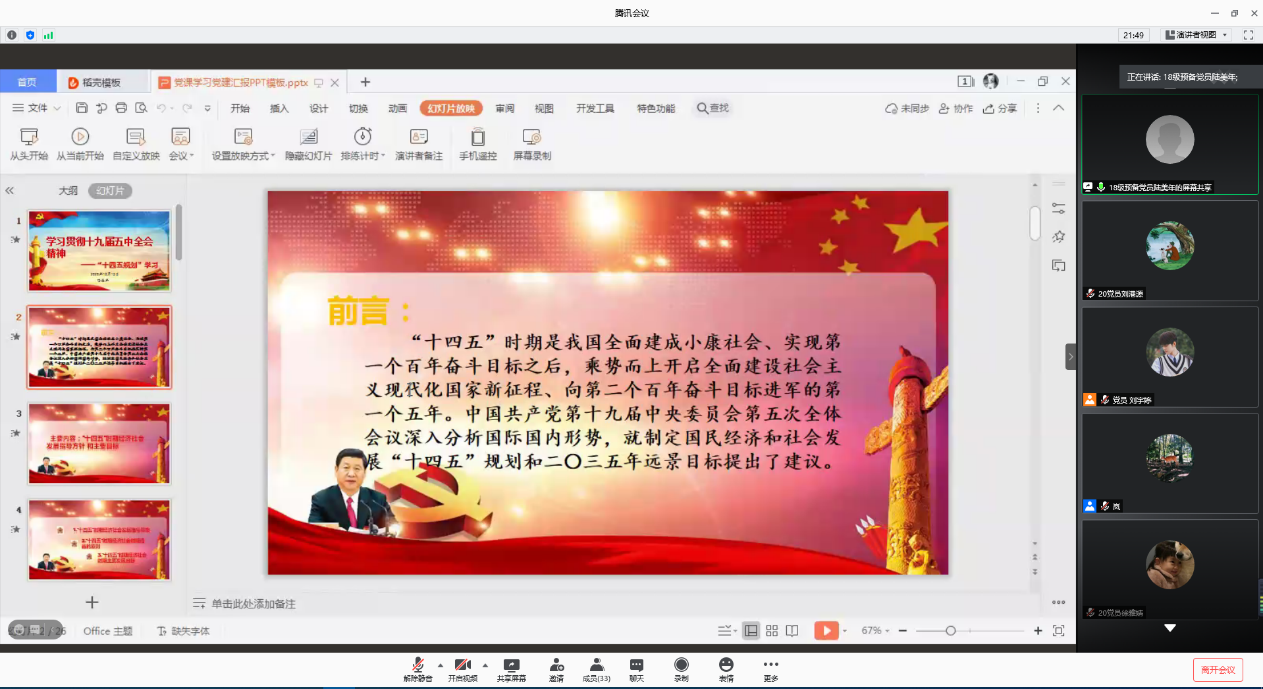 研究生第二党支部预备党员陆美年同志党课截图