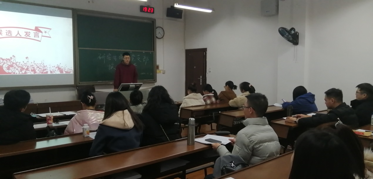 随后,支部委员会候选人发言。支部副书记候选人为李晶晶同志、刘桂同志,组织委员候选人为李洋洋同志、何庭杰同志,宣传委员候选人为程顺同志和陈甘霖同志。六位候选人分别从思想上、学习上、工作上等方面进行了个人陈述,表明了对支部委员会相关工作的认识和参加竞选的理由。