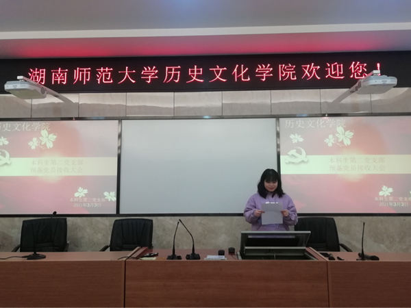 (通讯员 朱灵)3月3日下午,历文院本科生第二党支部在历文院203会议室召开预备党员接收大会。会议由2018级文管班张芷心主持召开,本科生第二党支部全体成员参加。