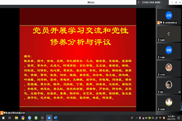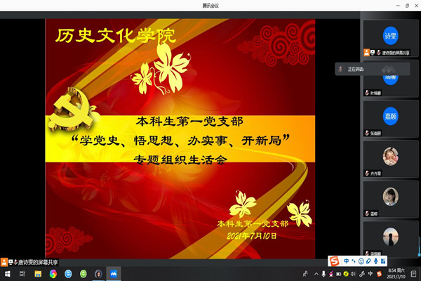 (通讯员 叶瑞馨)7月10日上午,历文院本科生第一党支部在线上举行了本科生第一党支部“学党史、悟思想、办实事、开新局”专题组织生活会,唐诗雯同志担任主持。本次会议共分为四个环节——重温入党誓词、支部书记陈卓君进行述职、党员开展学习交流和党性修养分析、sunbet申搏党委副书记贺慧星进行总结。