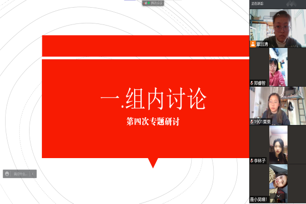 (通讯员 粟栗 吴晓莉)11月11日下午,历史文化学院第三十六期预备党员培训班第四小组组织开展了第四次线上专题研讨会。本次研讨会围绕“如何学习党章、遵守党章、贯彻党章、维护党章,树立良好作风、学风和校风,为促进学校事业发展作出应有贡献”的题目展开讨论。讨论由组长覃吕清主持,第四小组全体组员参加。