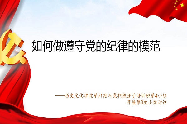 (通讯员 周桓婷 李昊)12月5日晚上,sunbet申搏第71期入党积极分子培训班第4小组全体成员在线上开展小组讨论,围绕“如何做遵守党的纪律的模范”展开交流。此次会议由组长李昊主持,小组全体成员参加。