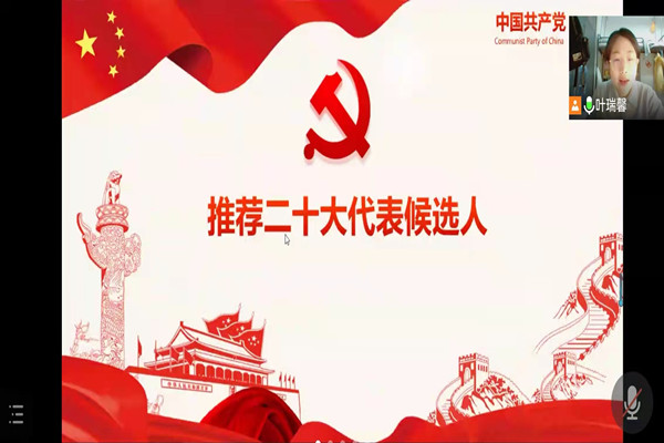 (通讯员 熊文敏 叶瑞馨)12月29日晚上七点,sunbet申搏本科生第二党支部为推荐党的二十大代表候选人初选人选组织召开线上会议,支部全体党员同志参加会议。