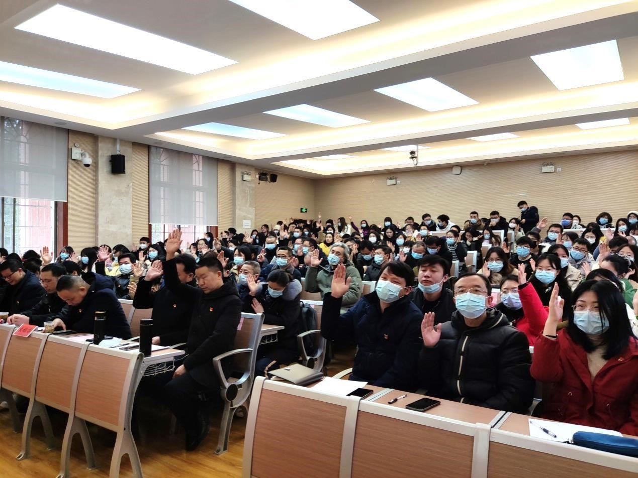 (通讯员 张芷心)2月20日下午,sunbet申搏,sunbet申搏官网在203报告厅召开党员大会。校党委组织部副部长袁道香同志、校党委组织部组织科科长陈文东同志应邀出席,学院全体党员参加会议。