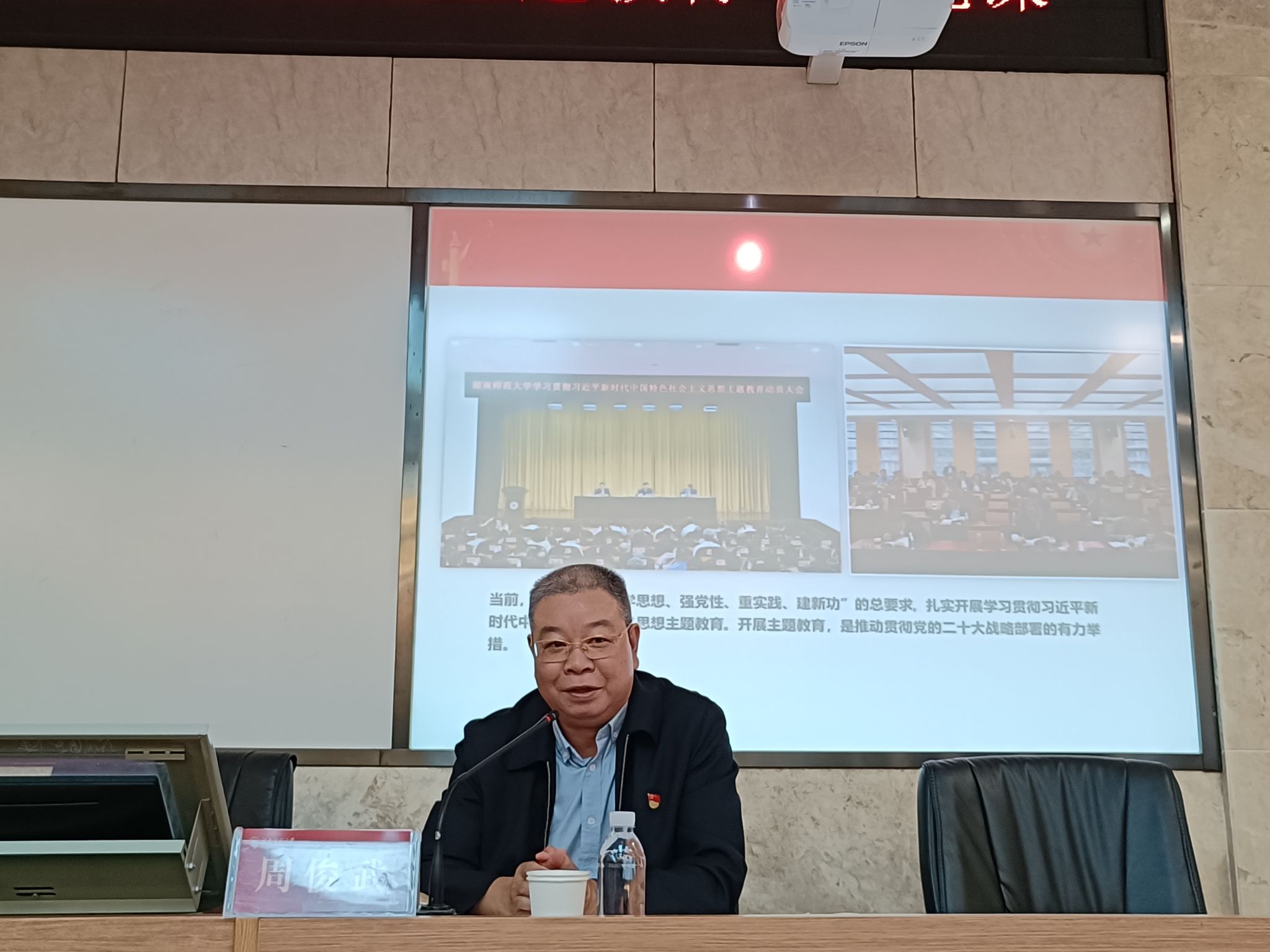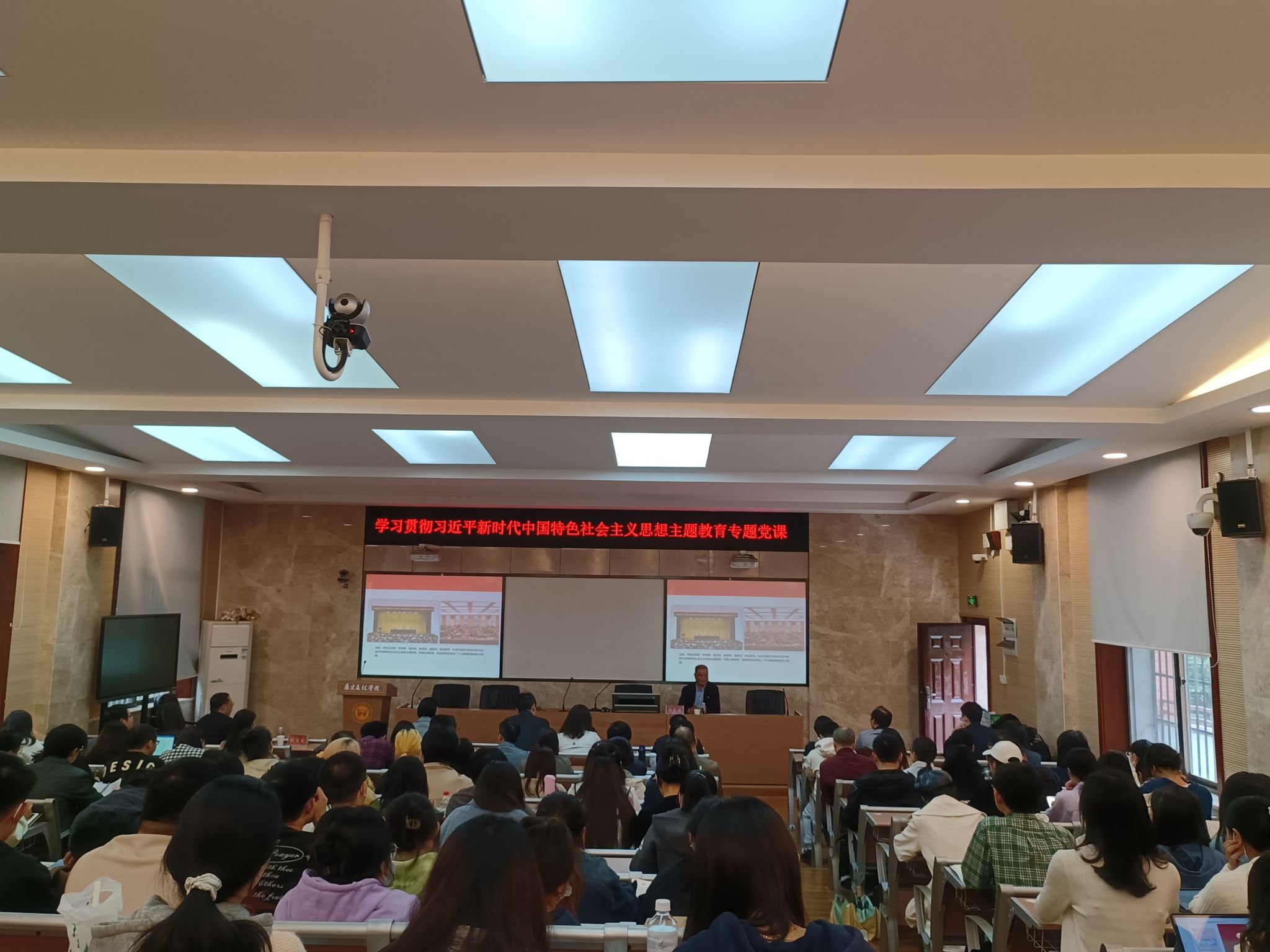 5月11日下午,校党委副书记周俊武教授在文渊楼203报告厅为sunbet申搏师生讲授学习贯彻习近平新时代中国特色社会主义思想主题教育专题党课。党课由sunbet申搏党委书记孔春辉主持。