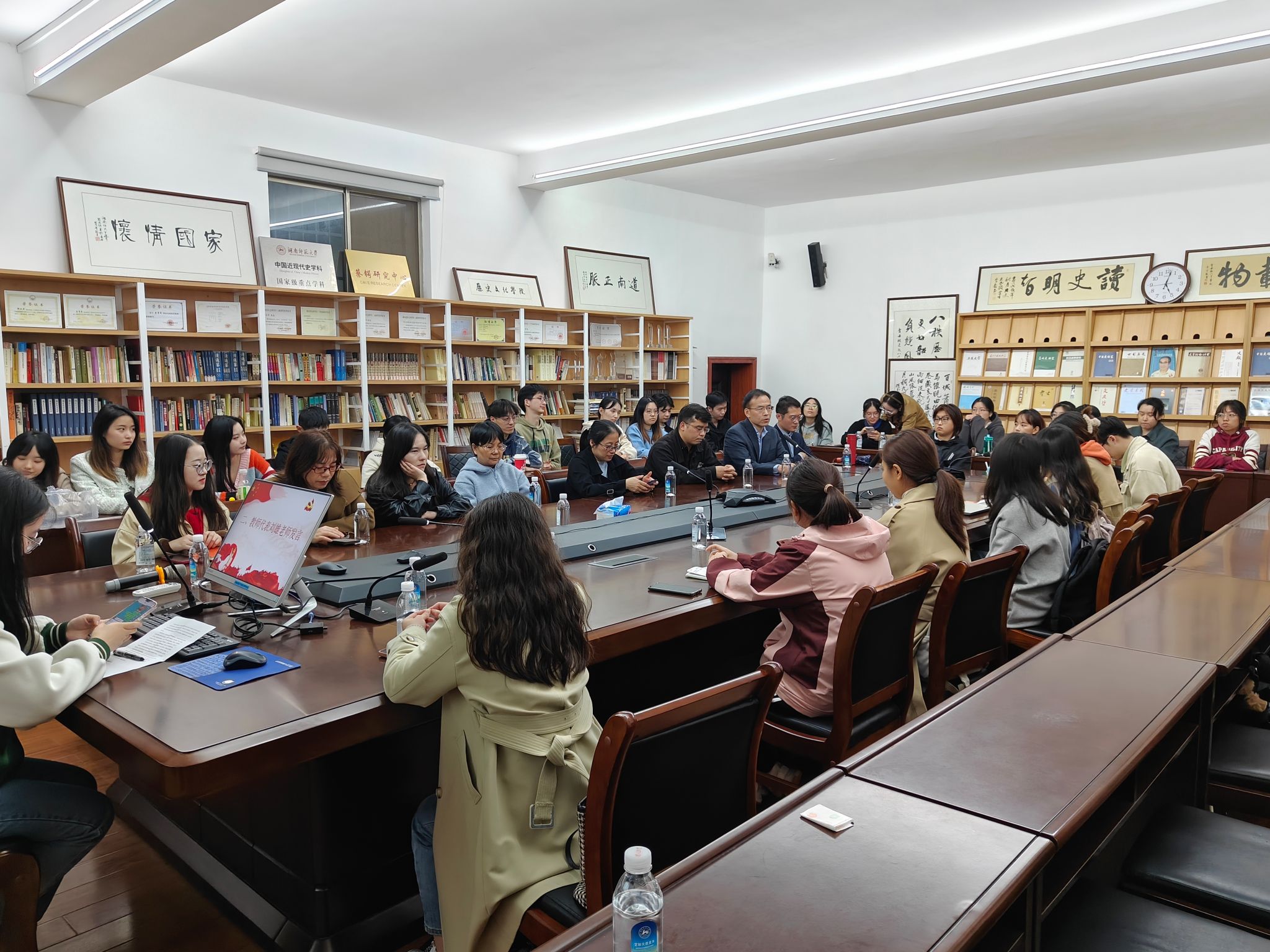 活动过程中,有教师党员结合自身从教经历向学生传授治学心得,同时就课程考核方式设置的问题提出困惑;有研究生党员分享本科期间的学习和保研经历,激励党员们做到理论学习和专业知识学习两不误;有本科生党员向老师请教“如何在教学过程中提高中学生对历史课堂的学习兴趣”“学业与就业如何平衡”等问题。教师们对每个问题有针对性地进行耐心讲解,学生也回应老师教学困惑给出个人建议,师生之间轻松而又融洽。