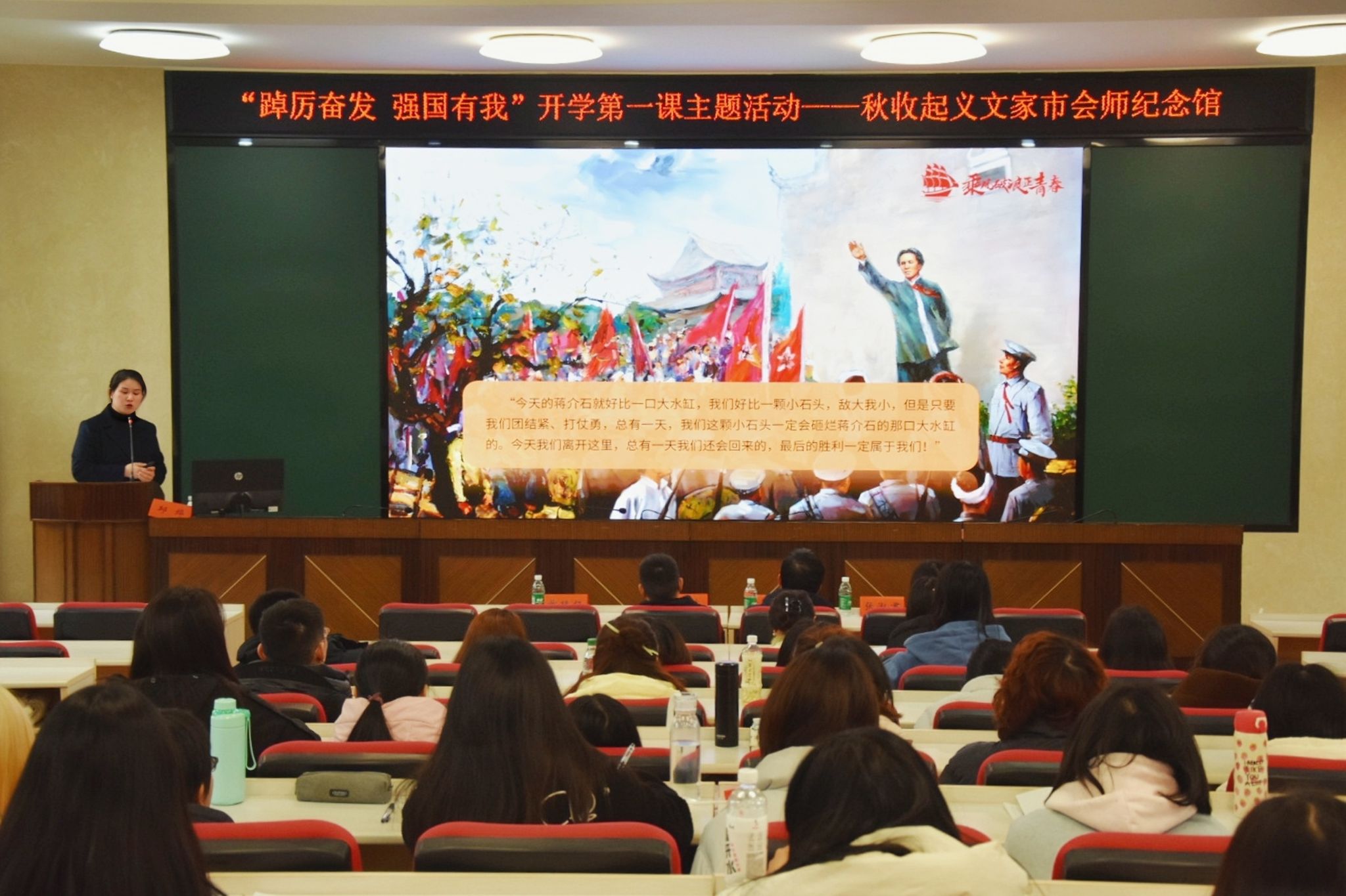 (通讯员 徐琳 刘晓桦)3月6日下午,sunbet申搏于文渊楼202教室开展“乘风破浪正青春——毛泽东在浏阳”的主题思政党课。秋收起义文家市会师纪念馆副馆长苏杨辉,党建办主任甘武,党组成员黄梓钰、张淑君、邱烨及历文院部分师生党员参加,邱烨担任主讲人。