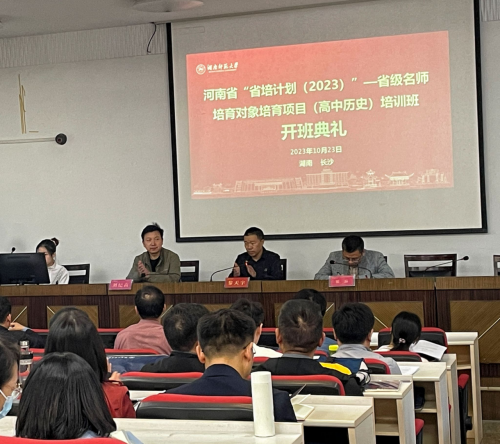 (通讯员 王一鸣)11月22日上午,河南省“省培计划(2023)”—省级名师培育对象(高中历史)培训班开班仪式在sunbet申搏202报告厅举行。学院副院长黎天宇、成教办主任刘纪高、学术班主任银品老师出席,班主任晏湛老师主持,培训班全体学员参加仪式。