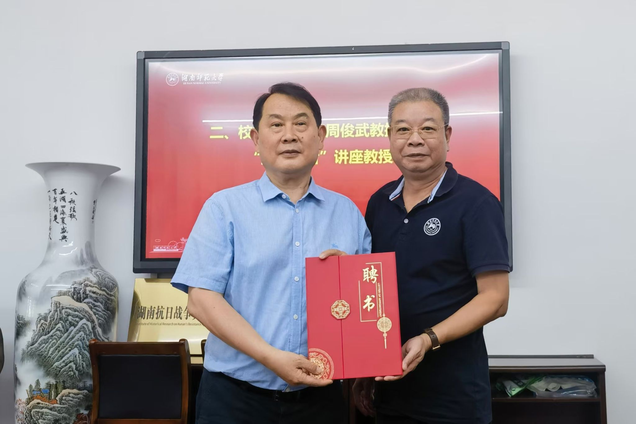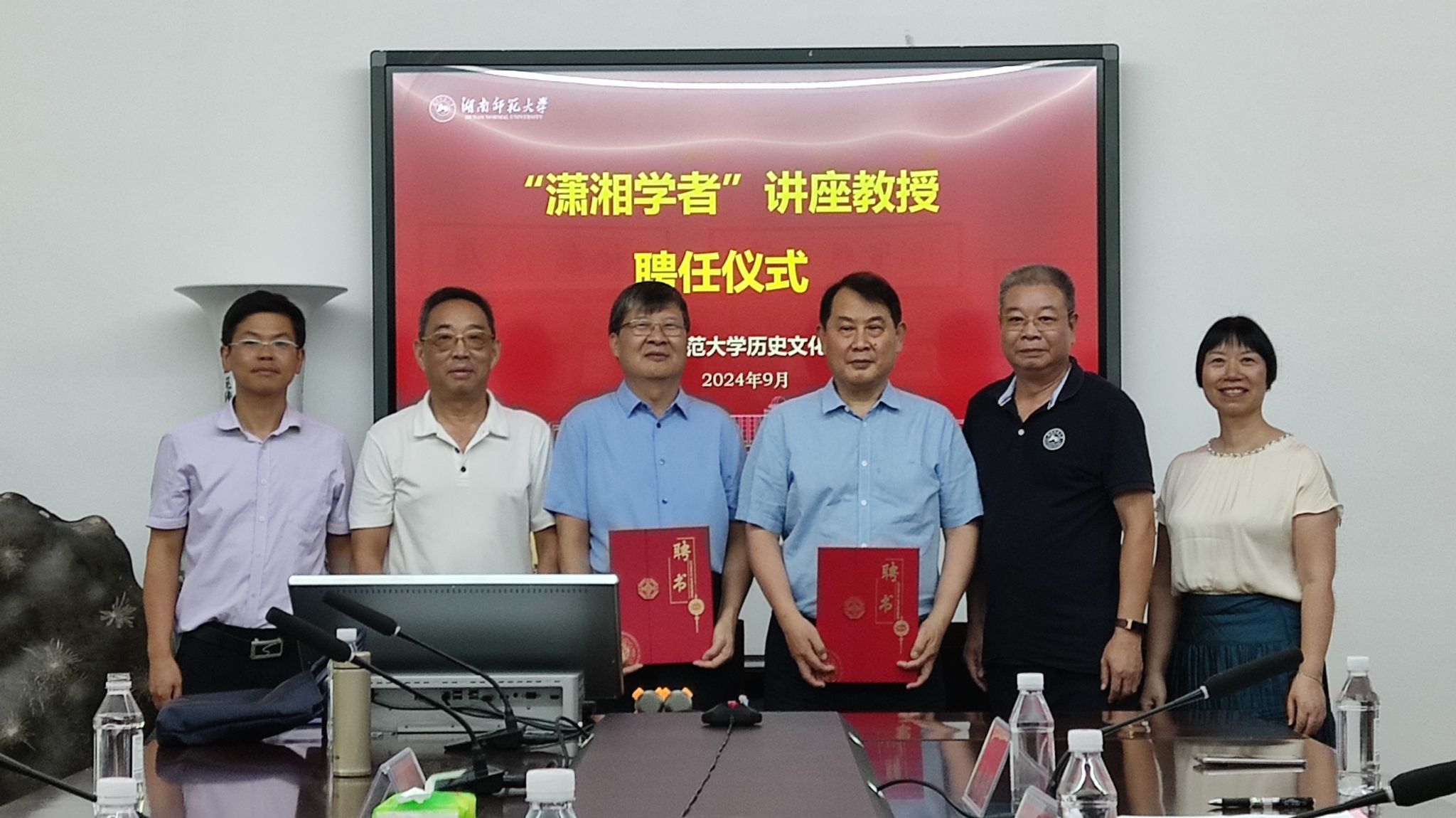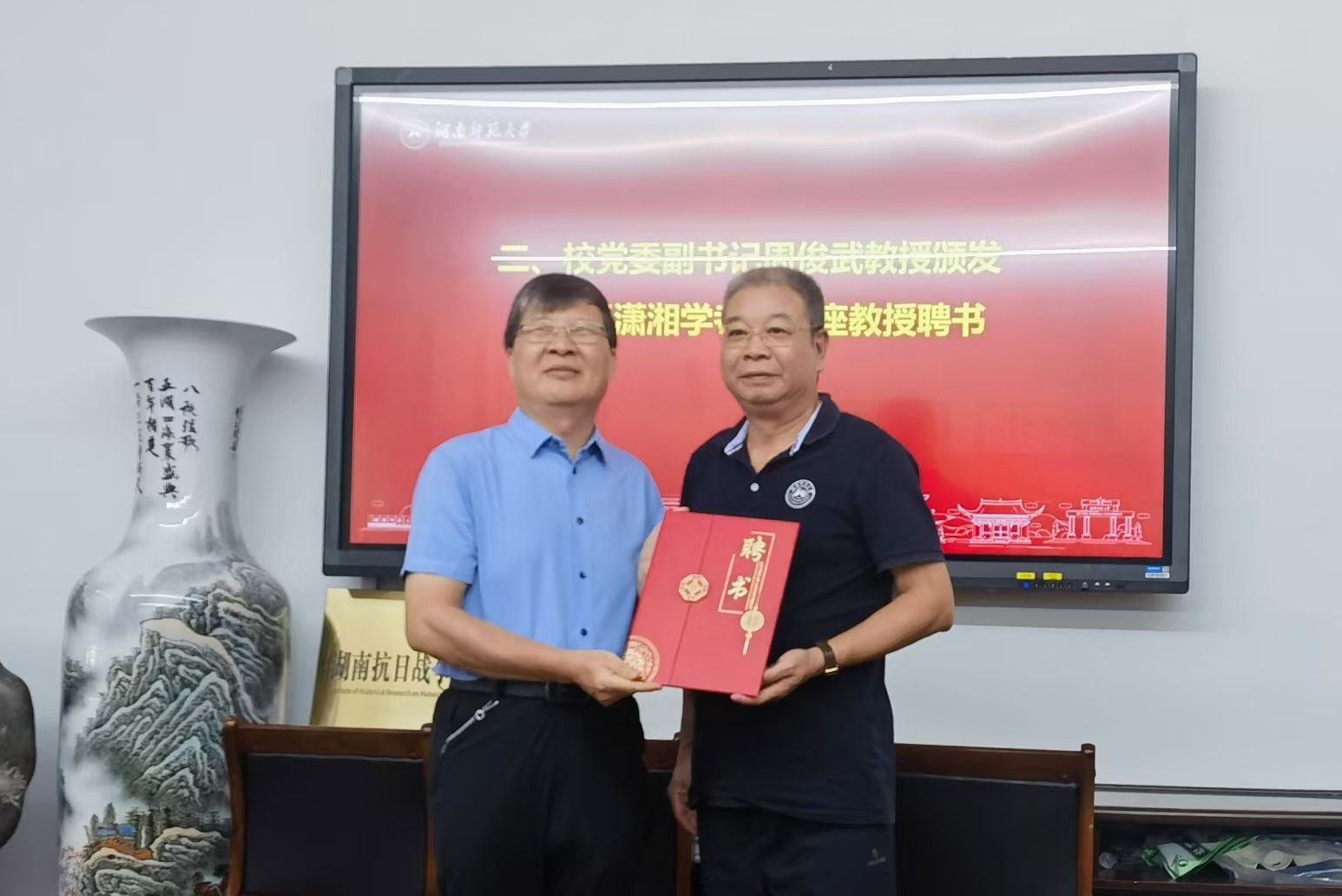 (通讯员 赵怡婷 唐静茹)9月9日下午,sunbet申搏于文渊楼111会议室举行“潇湘学者”讲座教授聘任仪式,聘任陈谦平、李细珠教授为“潇湘学者”讲座教授。校党委副书记周俊武出席仪式,仪式由sunbet申搏党委书记孔春辉主持。