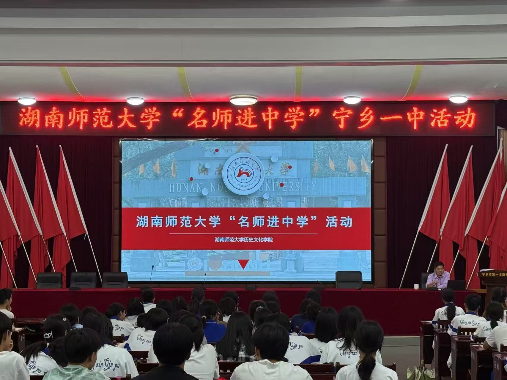 随后,刘利民院长在宁乡一中大讲堂为与会全体师生作《让历史告诉未来》专题讲座。从“历史的定义与价值、历史学习的实用性以及历史学习的方法论”三个方面展开讲座,结合学科专业特色,用通俗的语言进行深入浅出的讲解,带领同学们认识历史、探寻历史,激发他们对历史专业的学习兴趣。同时,刘利民院长还为同学们介绍了我校以及学院的历史沿革、学科建设、人才培养、学术成果等,鼓励同学们报考我校。
