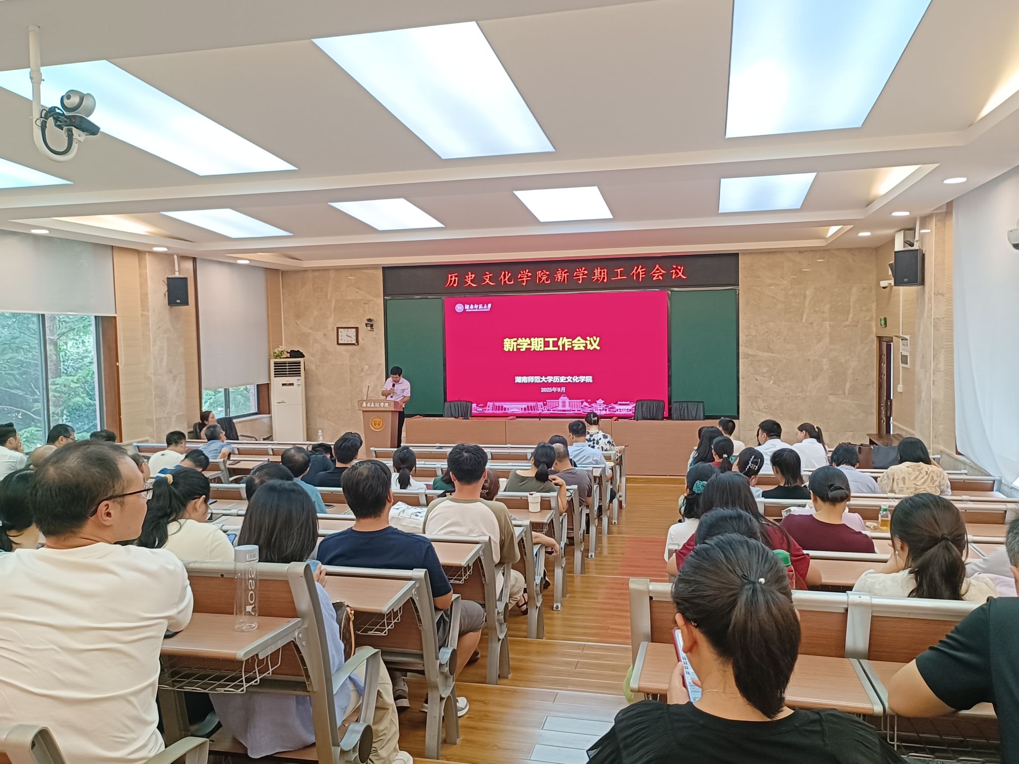 刘利民传达了学校新学期工作会议精神,结合学校重点工作,分析了学院发展面临的形势和任务。他希望全院教职工围绕立德树人根本任务,以学校启动“十五五”规划编制为契机,保稳定,促发展,推动学院事业再上新台阶。