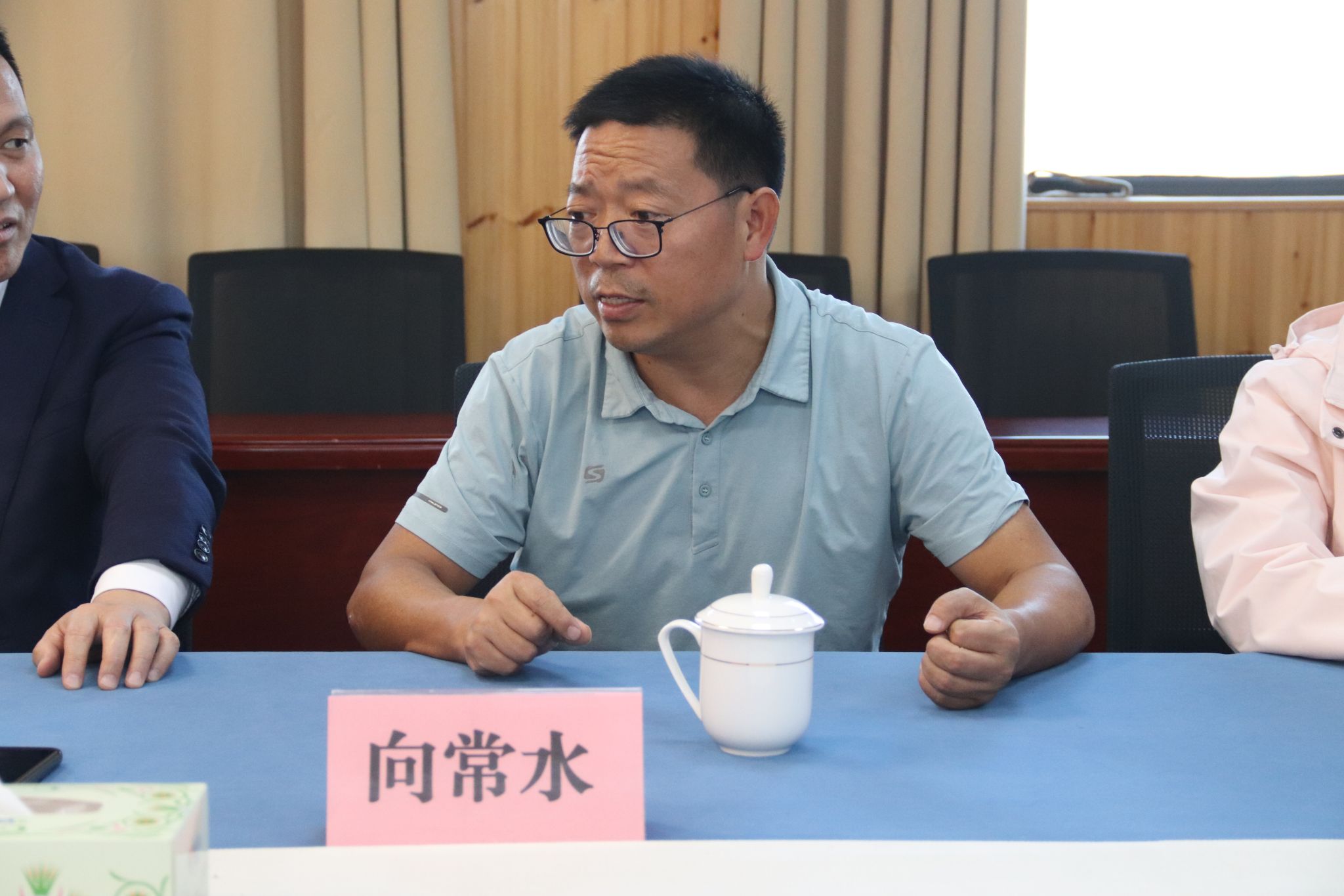 这次座谈会由向常水主持。会议伊始,罗浩书记以三个关键词“历史”、“故事”、“希望”三个关键词扼要介绍了长沙实验雨花中学的基本情况。其间,他还分享了学校在保障实习质量与效果、学校教师团队建设与学生心理健康等方面好的做法。
