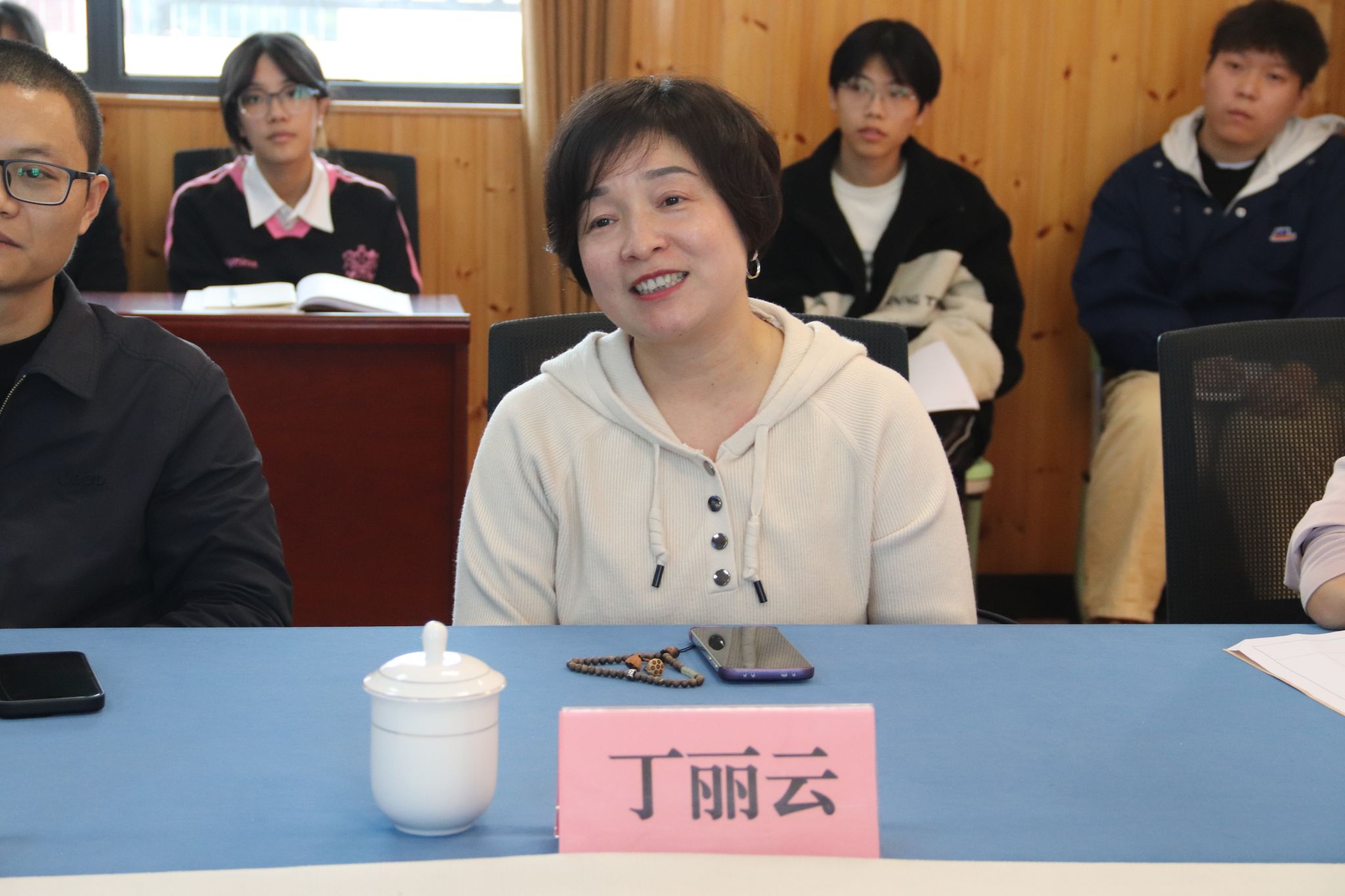 本次座谈会在长沙实验雨花中学善思楼会议室举行。长沙实验雨花中学党总支书记罗浩,副校长丁丽云、杨嫱,教务处主任黎栋,实习队指导老师向常水及实习队全体同学参加了此次座谈。