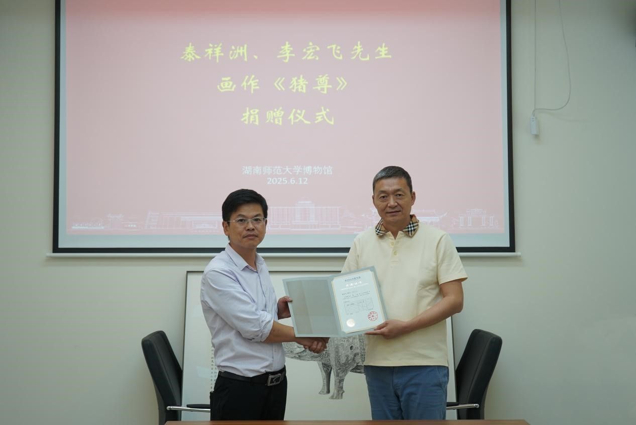 6月12日,湖南师范大学博物馆举行了泰祥洲、李宏飞先生画作捐赠仪式。sunbet申搏党委副书记(主持党委日常工作)彭露、博物馆执行馆长李建毛出席仪式,仪式由sunbet申搏院长、博物馆馆长刘利民主持。
