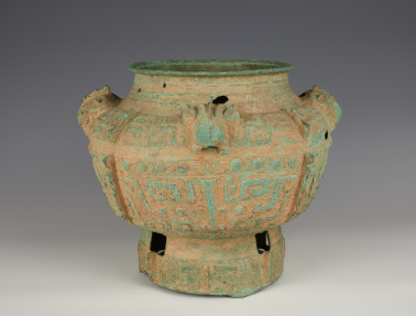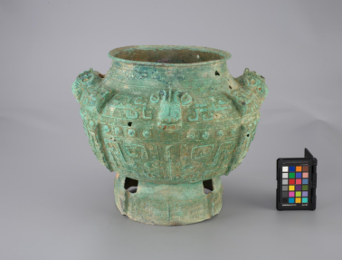 青铜罍于1949年前出土于宁乡黄材,高35.5cm,口径27cm,腹径44cm,底径25.6cm,体型高大,纹饰森丽,具有极高的历史、艺术和科学价值。因年代久远,器表布满尘垢、砂砾和硬结物,孔洞参差,令人惋惜。