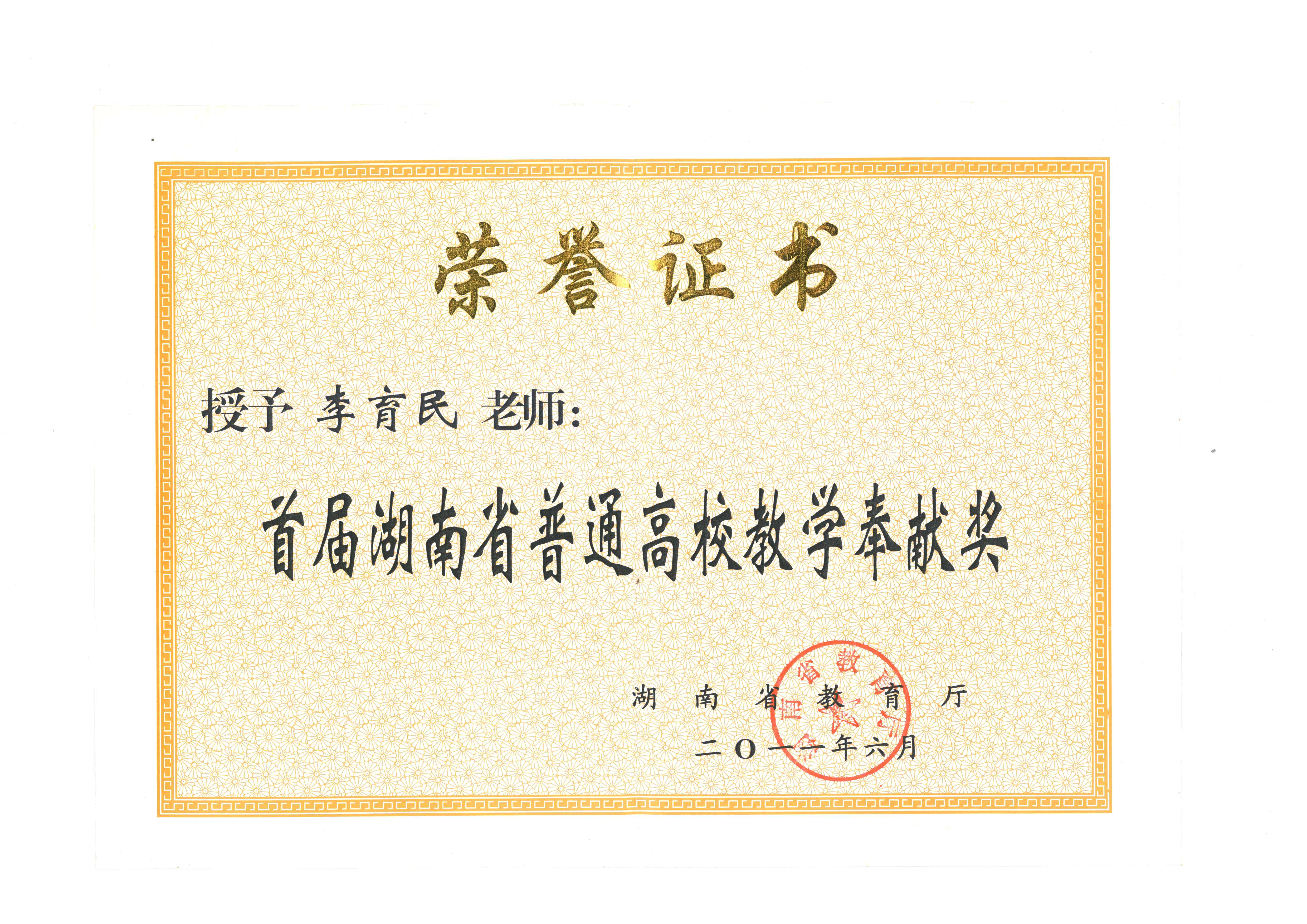 李育民教授荣获首届湖南省普通高校教学奉献奖